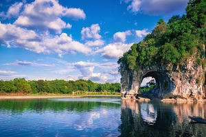 ☞【象鼻山】约60分钟:桂林市山水代表、城市象征城徽,其山酷似一头驻足漓江边临流饮水的大象,栩栩如生,引人入胜,山体前部的水月洞,弯如满月,穿透山体,清碧的江水从洞中穿鼻而过,洞影倒映江面,构成“水底有明月,水上明月浮”的奇观。