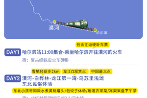 出发地-哈尔滨站11:00集合-乘坐哈尔滨-漠河火车硬卧