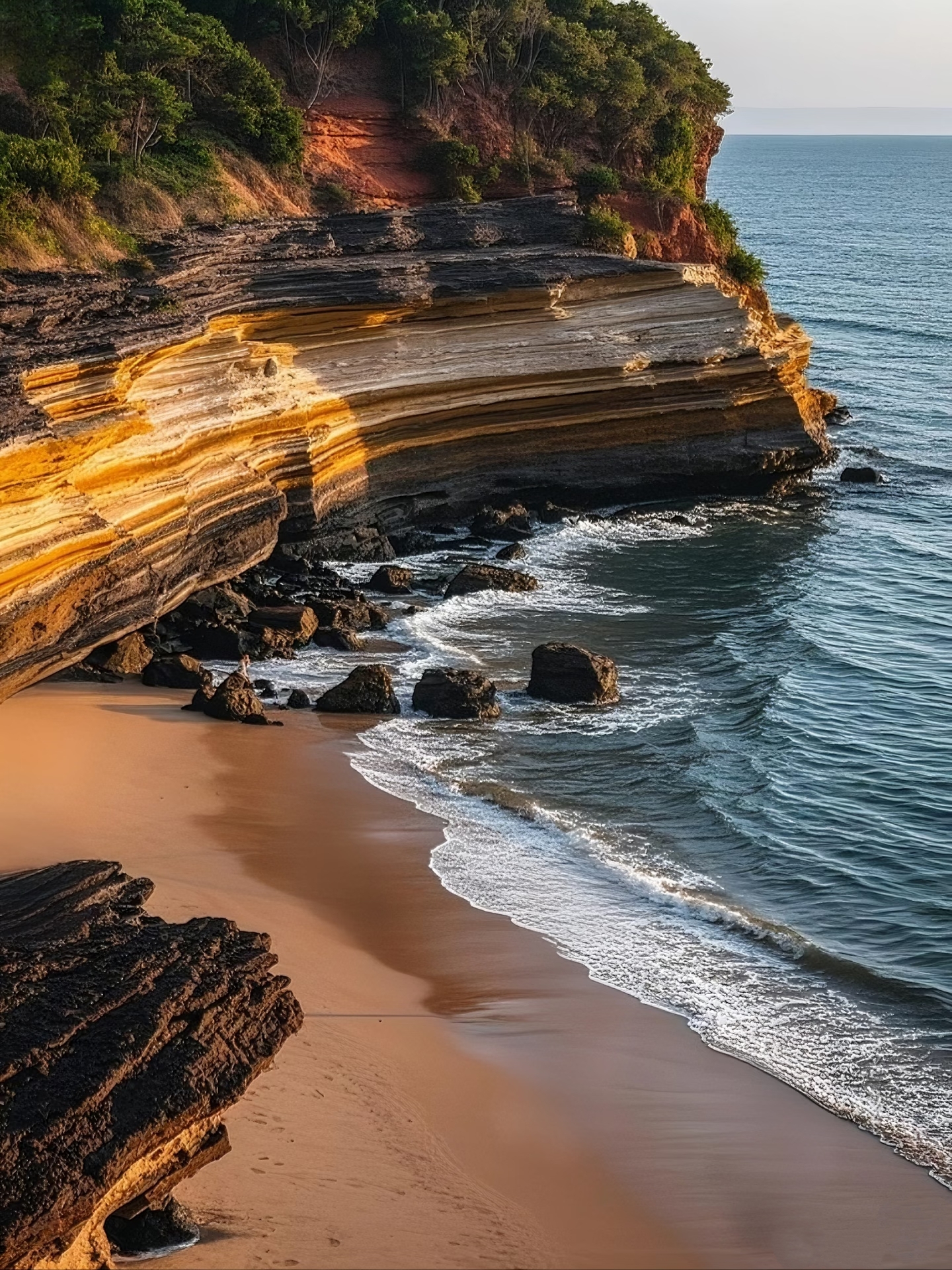 ☞自由活动(可自行去看日出)。可赶早去码头体验渔民早市;或跟着渔民出海捕鱼,乘风破浪的你尽享玩海的惬意,撒网、海钓、看海豚,收获久违的身心放松;也可租用小电驴环岛骑行尽览海岛美景……傍晚可自行前往滴水丹屏,一边是海蚀形成的赤色岩壁,岩壁上常年有水滴滴落;另一边是绝美的沙滩,这里是涠洲岛最佳日落观赏点,务必在日落前抵达。