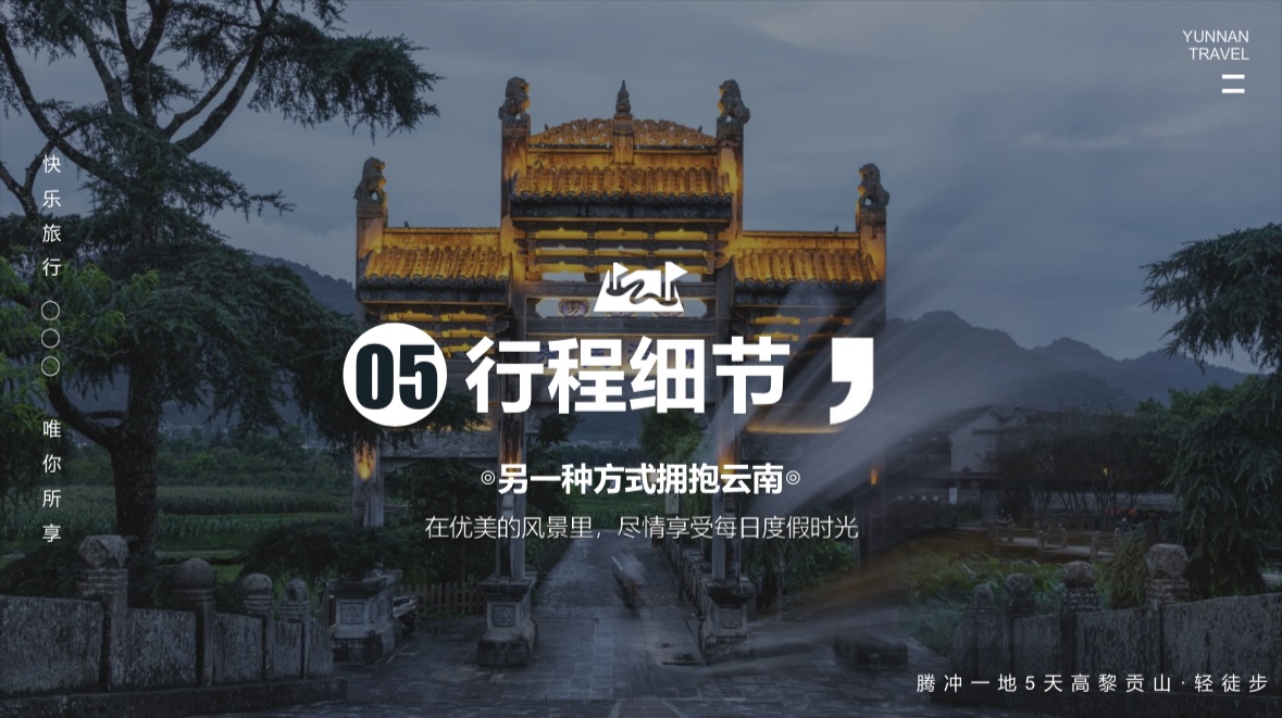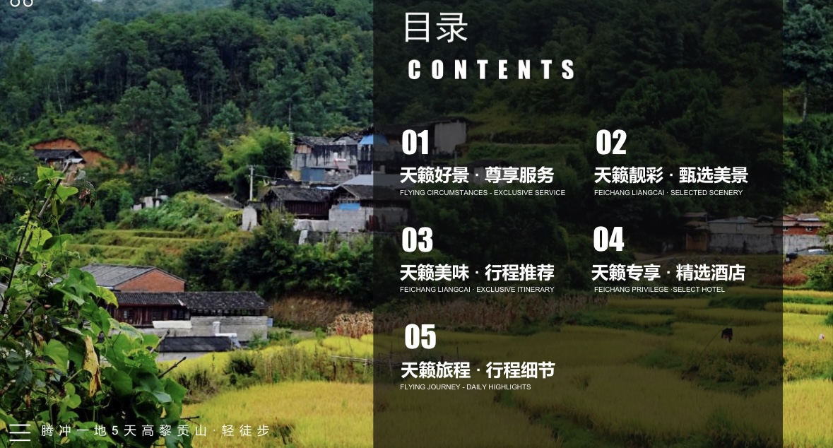 4、 用车:行程中标注的腾冲省内机场接送车辆费用及行程中用车,一人一正座。