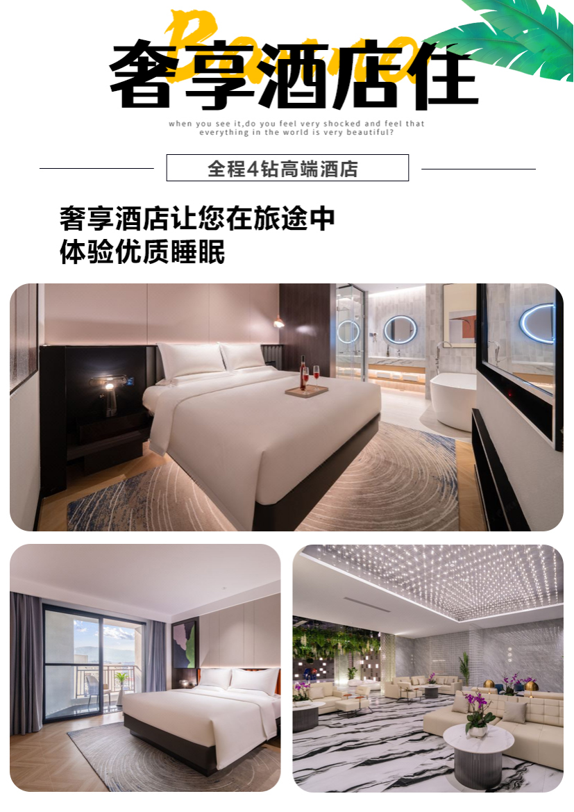 1、酒店:网评四钻酒店。行程中标注的酒店住宿费用:2人标准间,按床位计算,含酒店早餐费用;不占床则不含酒店早餐费用。