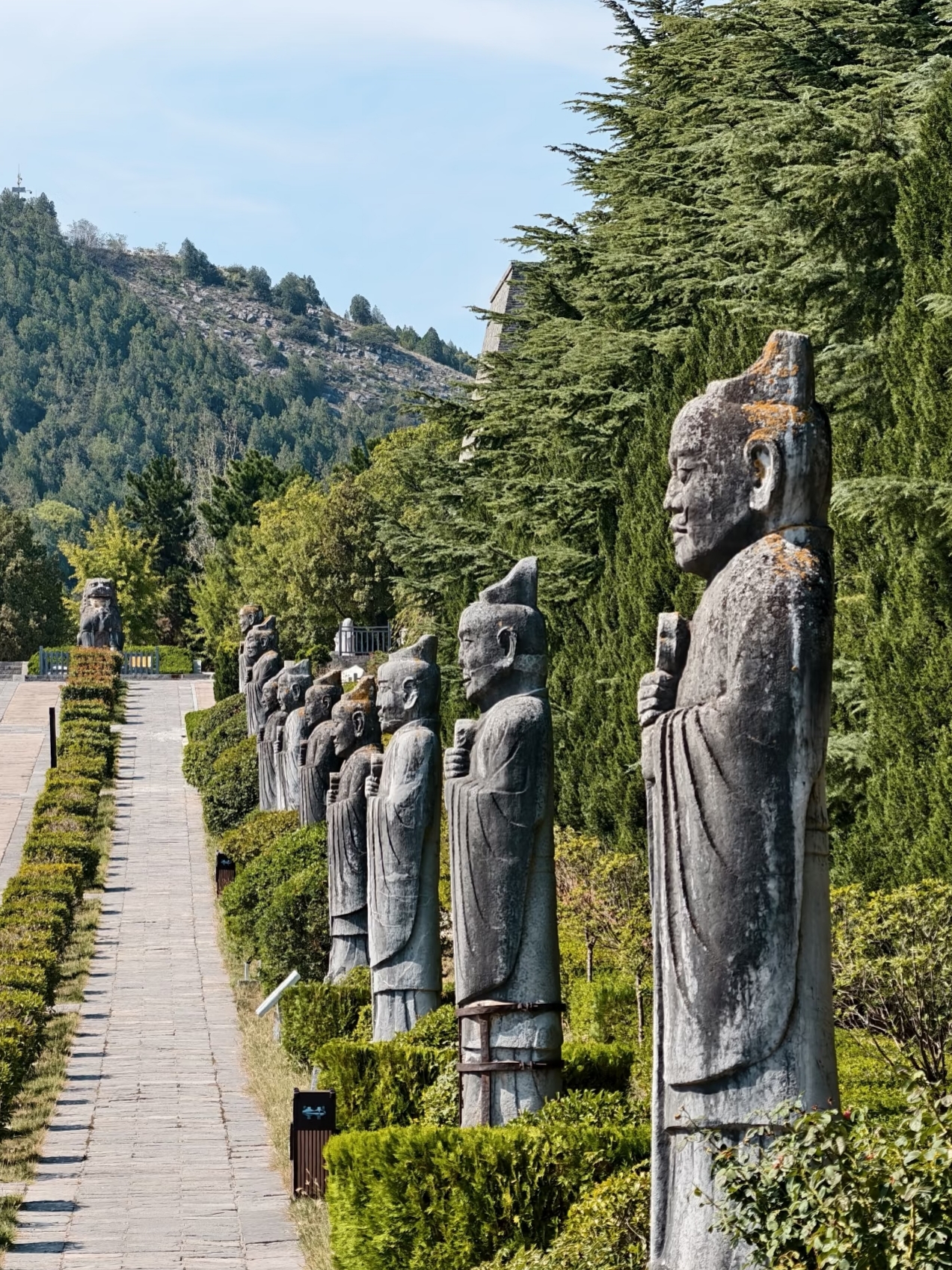 参观我国历史上唯一的女皇武则天与其丈夫唐高宗李治的合葬墓--【乾陵景区】 (参观约70分钟)--中国乃至世界上独一无二的一座两朝帝王、一对夫妻皇帝的合葬陵。里面埋葬着唐王朝第三位皇帝高宗李治和中国历史上唯一的女皇帝武则天,秦汉以后,皇帝皇后多不合葬,而乾陵夫妻“二圣”合葬墓独特一帜。景区有著名的《无字碑》、《述圣记碑》、61尊宾王石像等。