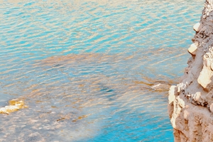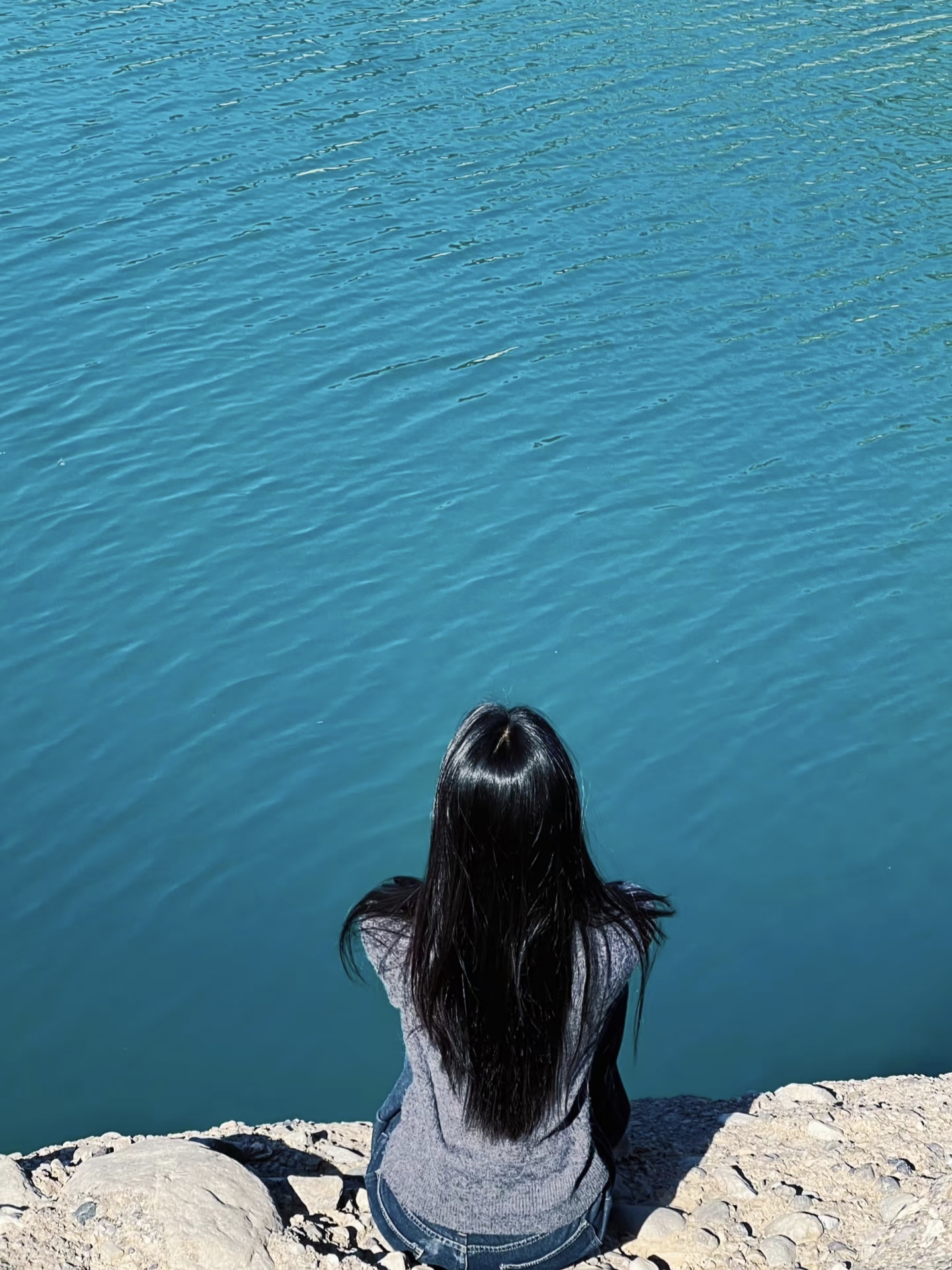 阳光的照射下,湖面晶莹剔透,如同翡翠