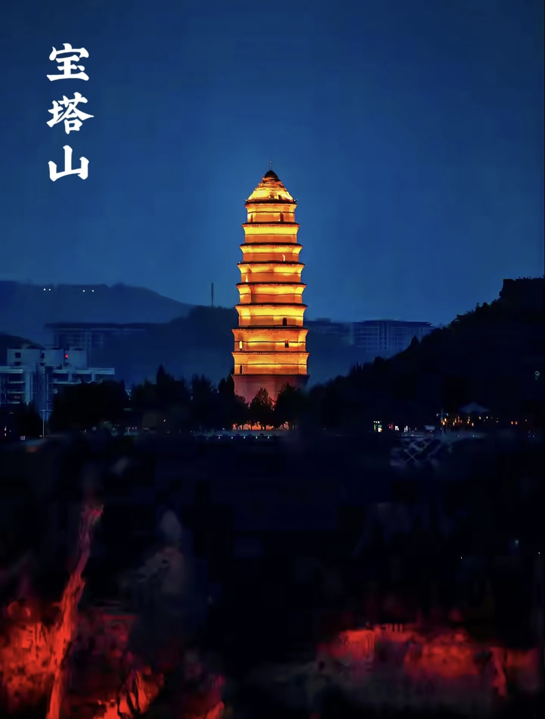 安精神的灵魂。之后抵达红色革命圣地延安,(【宝塔山】不含门票)(停留打卡拍照;40 分钟),延安是中国革命的圣地,是中国革命精神标识。位于延安城东南方向,宝塔建于唐代,高 44 米,共九层。著名文学家贺敬之热情讴歌了宝塔山在中国人民心目中的神圣地位"几回回梦里回延安,双手搂定宝塔山",行走在宝塔山下,怀念延安岁月,缅怀中国共产党在延安的革命精神。