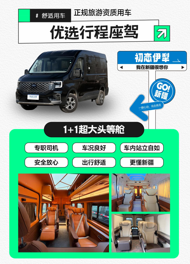 5.超公里数费用:根据运管局规定,新疆营运车司机每天限行600公里。如超出600公里数,司机将面临2万-10万的巨额罚款/吊销营业执照。因此,除行程计划外,日常出行建议您自行安排出租车或其他合适的交通工具来完成,感谢您的理解与配合!