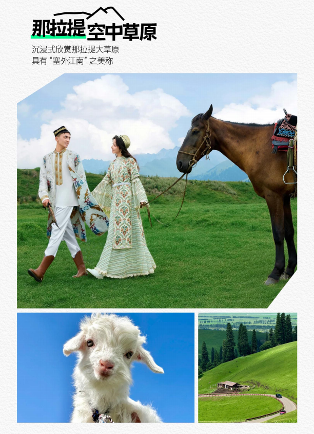 门票:独山子大峡谷门票、木特塔尔沙漠门票、赛里木湖自驾门票、吐尔根杏花门票(花期包含)、那拉提空中草原门票+区间车