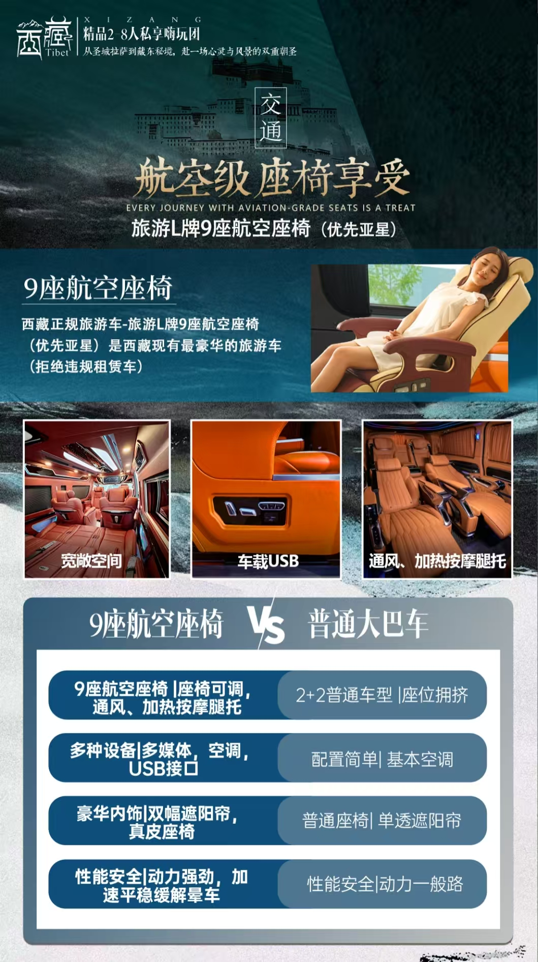 【舒适出行】VIP9座至尊豪华航空座椅,拒绝大巴颠簸和大团拥挤(市内除外),尊享天花板座驾;
