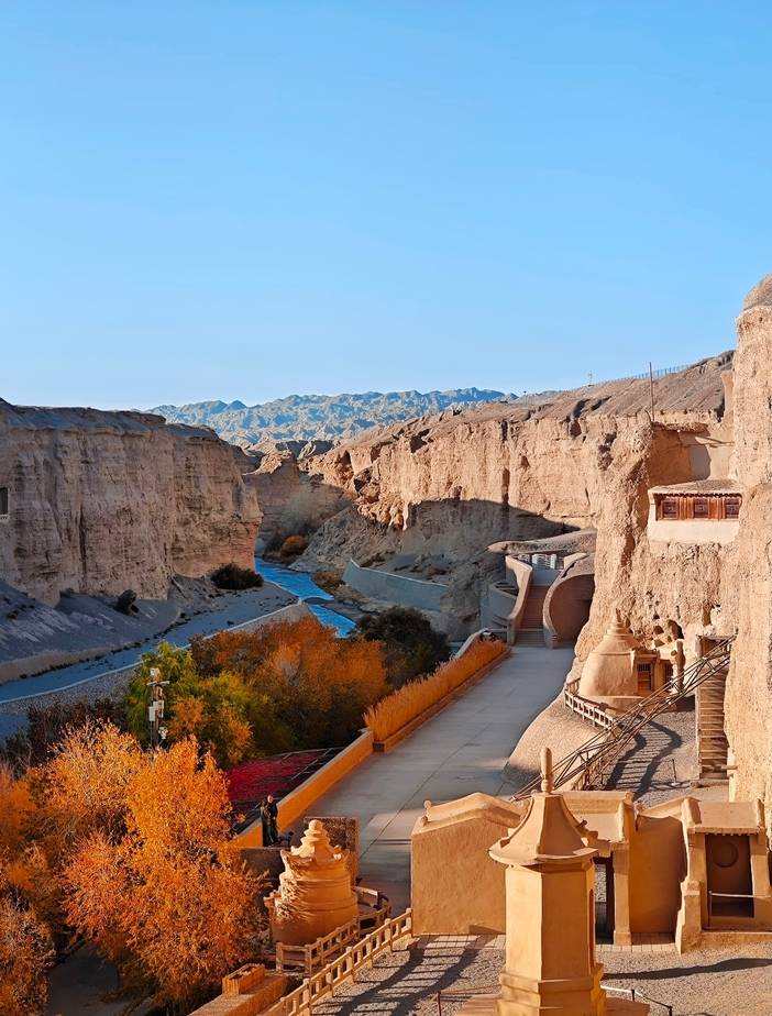 莫高窟:莫高窟不仅是丝绸之路上最耀眼的明珠,更是全人类共同守护的文化宝藏。它位于敦煌市东南25公里处的鸣沙山东麓断崖上,是世界上现存规模最大、连续修建时间最长、内容最丰富的佛教艺术宝库,1987年被联合国教科文组织列入世界文化遗产名录。莫高窟现存洞窟735个,分布在南北长约1700多米的崖面上。分为南北两区:南区:主要是礼佛活动的场所,现存有壁画和彩塑的洞窟492个;北区:多为僧侣修行、生活和瘗埋的场所,有洞窟243个,但多无彩塑和壁画。莫高窟的魅力,只有亲身站在那些千年洞窟前,听着讲解员手电光束下流淌出的故事,才能真正体会“一眼千年”的震撼。